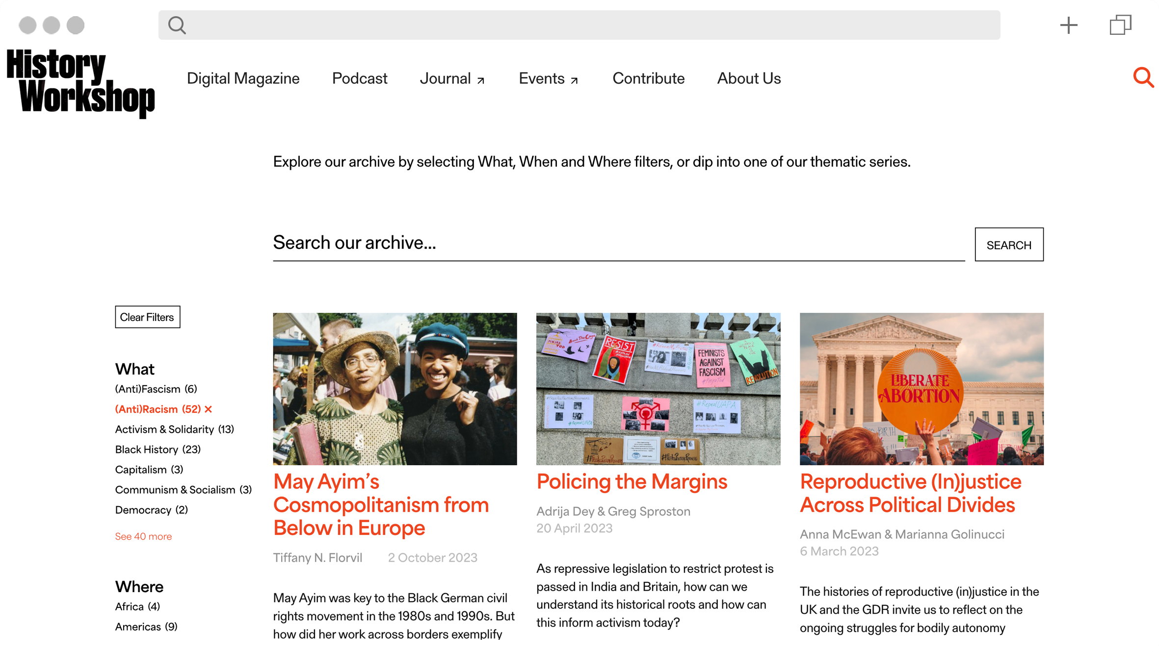 Marijn Degenaar, Michael Derringer and I were tasked with redeveloping History Workshop’s website, with the goal of transforming it from an off-the-shelf WordPress site into a more user-friendly and accessible experience. We gave the site a magazine-style front page to show off their latest content and used a custom faceted search to make it easier to browse and search older posts, which had previously been buried deep within their blog. Have a browse through their archive, there’s so much incredible content.